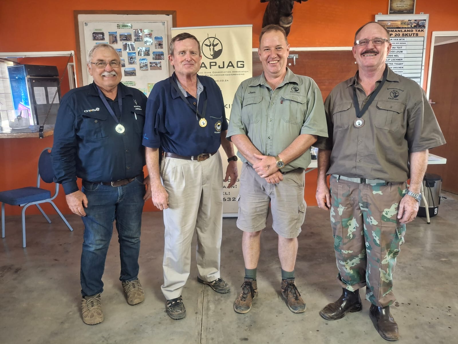 Jan du Toit, voorsitter van Boesmanland Tak met sy pligsgetroue en toegewyde bestuur, bied byeenkomste aan wat bywoning selfs uit Kaapstad trek en met sulke noemenswaardige pryse dat baie van ons groter takke se manne wonder, hoe kry hulle dit reg? Jan en sy bestuur is gemeenskapsmense en is nie net by KAAPJAG betrokke nie, maar dien die dorp en omgewing met dieselfde toewyding as die lede van ons vereniging. Boesmanland Tak spog ook met ‘n wêreldklas skietbaan en ‘n mooi klubhuis en goedversorgde skietpunte en walle. Ramskop Skietbaan is welbekend in die Boesmanland en Noord-Kaap. Hier is net twee van die onlangse byeenkomste aangebied deur ons manne op Calvinia.
